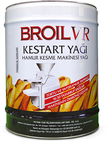 Broil VR, , kestart hamur kesme makinelerinin yağlanması amacı ile özel olarak üretilmiş bitkisel kökenli bir üründür.